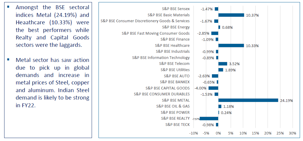 Indian Economy’s recovery pace moderated in April on account of 2nd Covid-19 wave with record infections. Markets remained stable in this month but two IPOs were listed at discount.
