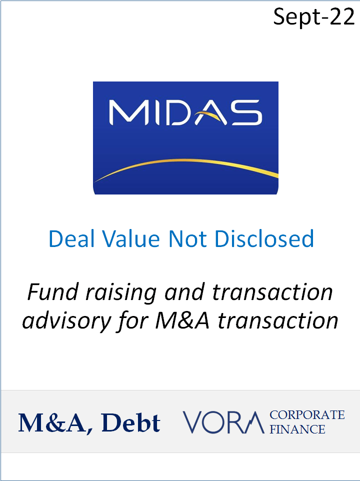 Transactions Vora Corporate Finance has domain expertise in Healthcare, IT, Industrial and Tech sectors. Following are our key deals. DEAL ALERT | PRESS RELEASE DEAL ALERT | PRESS RELEASE DEAL ALERT | PRESS RELEASE